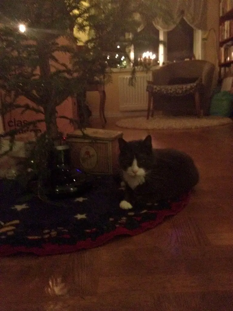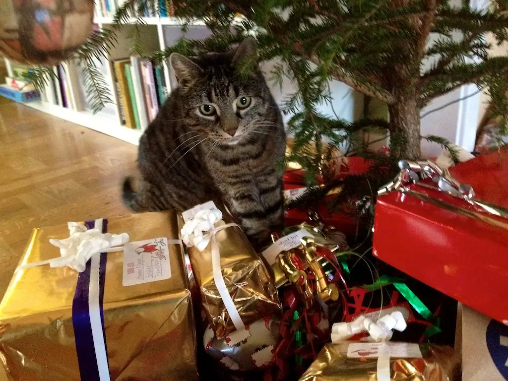 Our cat Silver thinks the best thing about Christmas is that we are so kind to bring a tree inside the house – just for him. In this picture, he’s a bit impatient because he has to wait so long for the tree to be in place.