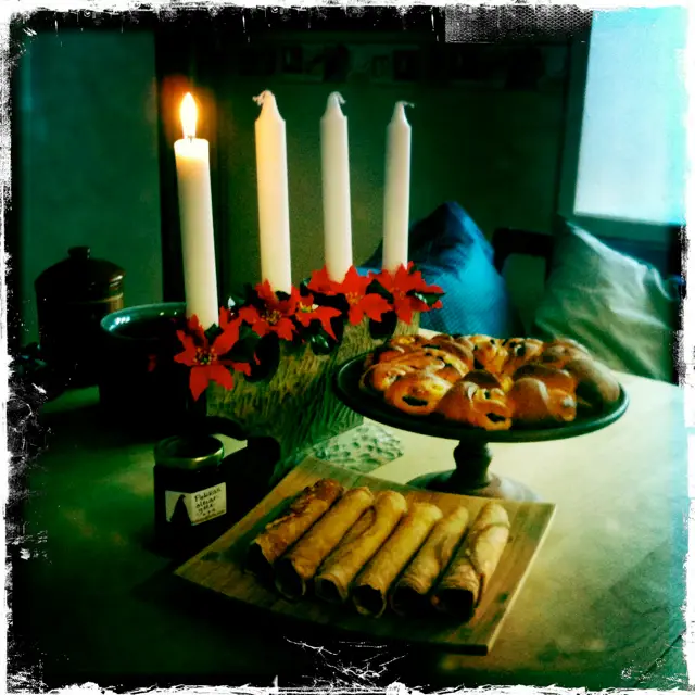 When we came back home, we made coffee and enjoyed our saffron buns and ”rullrån”.