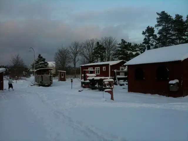 We have plenty of snow, as you can see in this picture of the old railway at Bläse. And there comes Santa? Can it really be Santa or Jultomten?