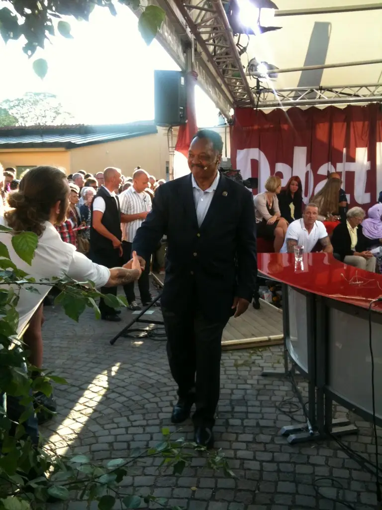 Almedalen Week is becoming a model for political meetings because of its open, friendly, and warm spirit. They are already copying it in Denmark, and this year, representatives from South Korea are here to study how it’s done. Another guest who came to see what Almedalen week is about was Jesse Jackson.