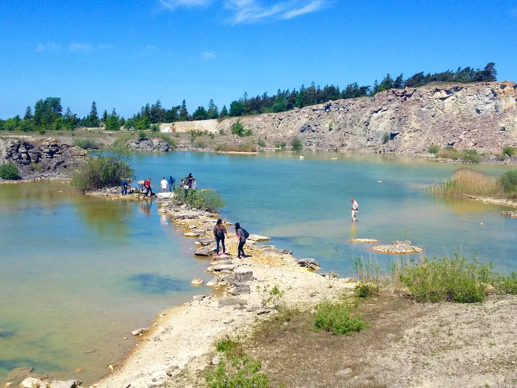 When the students got some time to spend on their own, all of them ended up in this abandoned quarry! Clas even took of his shoes and socks and tried out the water. He was lucky to not get a crayfish biting his toe…