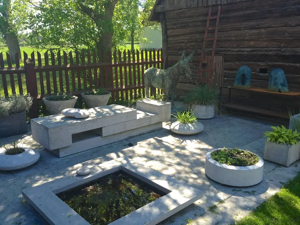 Skulpturfabriken in Boge. The founder and designer Stina Lindholm talked about how she got an interest for designing items for the garden in concrete and how it has developed to a well-renowned business.