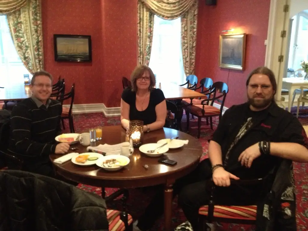 I samband med att Rickard skulle hålla en föreläsning om kulturellt entreprenörsskap i Visby, passade han på att planera in en frukost med mig, Krister Dahlström och Eva Bofride. Vi har jobbat med operasångaren Rickard Söderberg sedan augusti 2011, men aldrig träffat honom, så det kändes så roligt att äntligen få möta honom öga mot öga. Frukosten var så intensiv och inspirerande och det var mycket roligt att se hur Krister och Rickard fann varandra i sitt gemensamma intresse för Japan, även om det kom från helt olika håll. Kristers Kendoträning och Rickards rollspelande. På eftermiddagen var både jag och Roine och lyssnade på Rickards föreläsning. Jag känner mig så stolt över att vi har denna kloka och engagerade person som kund! Go Rickard!