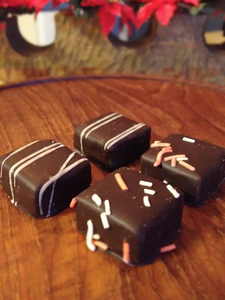 Väl hemma hjälptes vi åt att ställa ut stjärnor och ljusstakar och sen drack vi julte och provsmakade våra praliner – den ena sorten med smak av Baileys och den andra honung och saffran. Goda båda två!