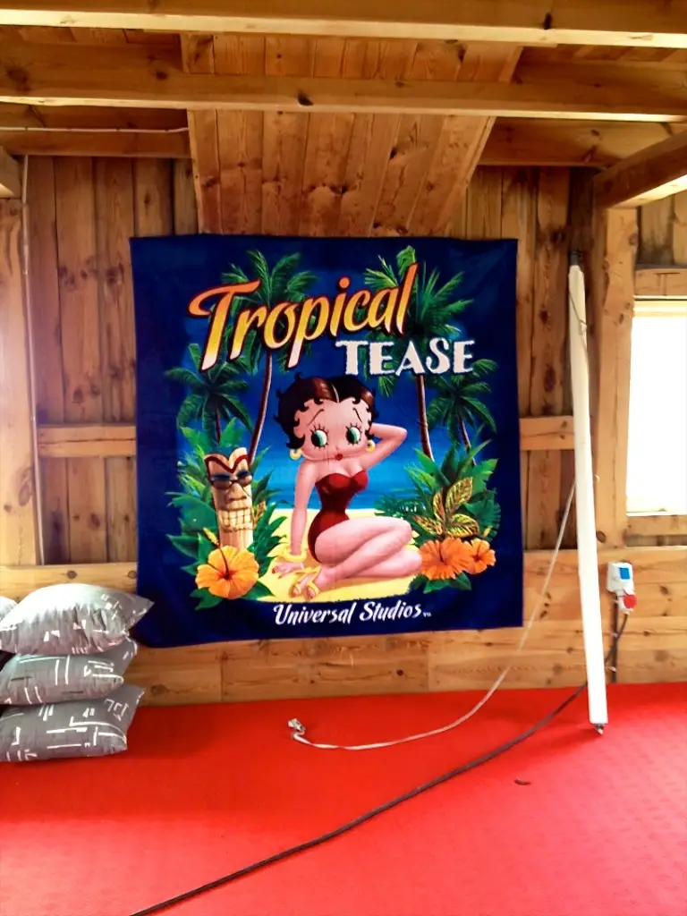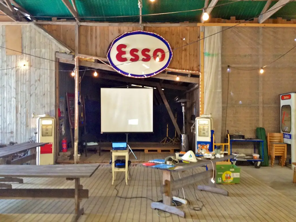 I det stora garaget/ladan finns det en scen som borde passa bra att spela rock på. I alla fall är det ingen risk att man dansar sönder golvet.