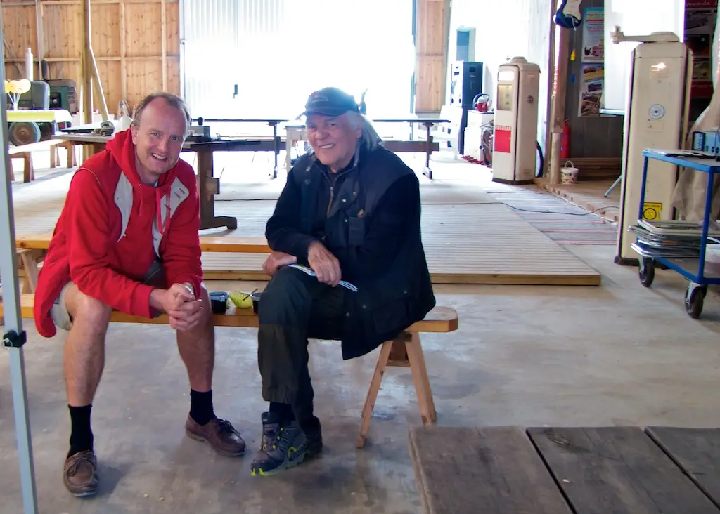 | Roine står framför traktorn som importerats från USA. Frakten kostade lika mycket som traktorn. Men vänta, vad pekar Roine på? |