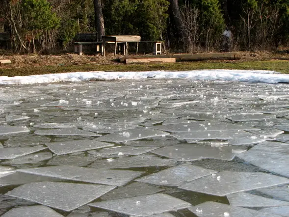 Utflyktsbord i februarisol. Vattenståndet är ovanligt högt, så stranden ser inte riktigt ut som vanligt.