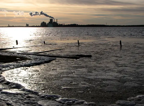 Vi tog en liten sväng med bilen idag och passade på att köra ut till Barläst. Där lyste solen på den spruckna isen. Cementa syns i bakgrunden.