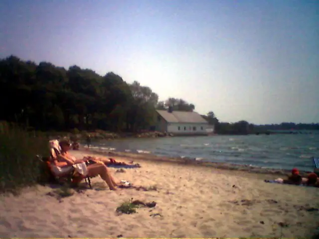 Själva stranden då? Det är en härlig sandstrand med Medusas badcafé i ena änden av viken och en campingplats i den andra. När man ligger på stranden har man fin utsikt ut över Slites skärgård. Här finns en brygga. Är man sugen kan man gå bort till badcafét eller GRAIPs kiosk och handla glass, ta en kopp kaffe eller en lunchmacka.