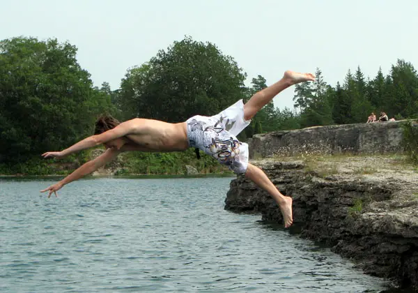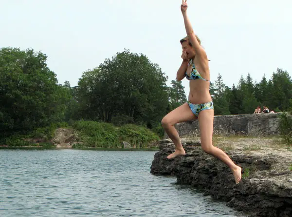 Här är det Alice som hoppar i kalkbrottet vid Smöjen.
