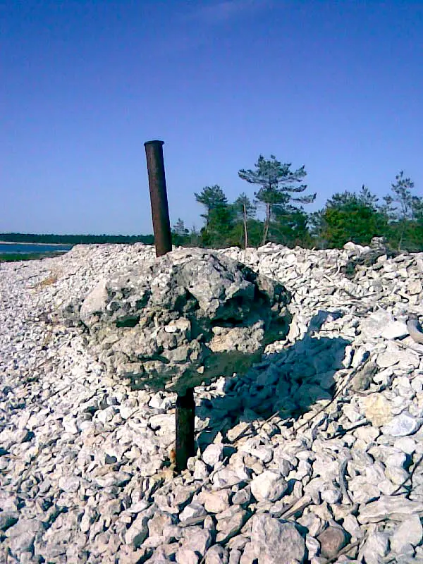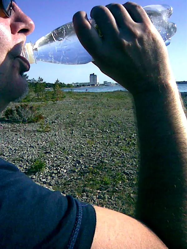 Här tar Roine en klunk vatten och långt där borta syns NordKalks anläggning.