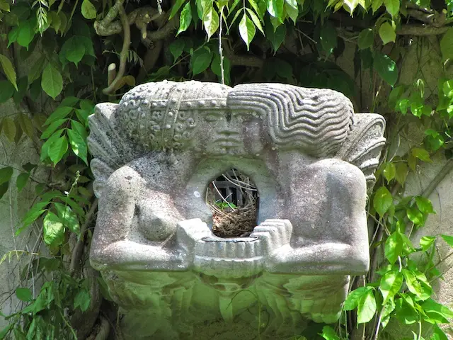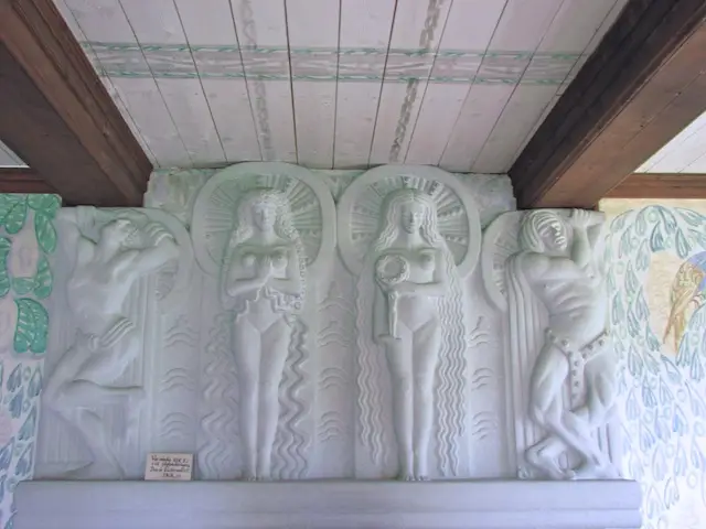 Här har jag zoomat in ”stuprören”, nej, så kan man ju inte skriva om dessa vackra älvliknande stenkvinnor, men funktionen var att vattnet från vinterträdgården skulle rinna ut här.