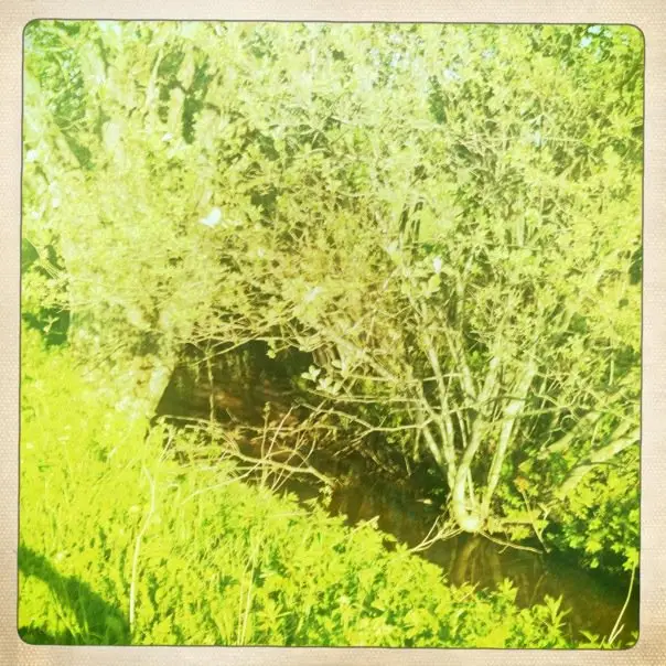 Sen hade vi en ”Det susar i säven”-upplevelse! Det simmade en råtta i bäcken och så kilade den snabbt upp och försvann in i sin håla som var kantad av prydliga stenar. Jag kan precis föreställa mig hur den har ett litet mysigt krypin där. Ordning och reda. Nu kommer jag alltid att kolla efter råttan när jag passerar det stället.