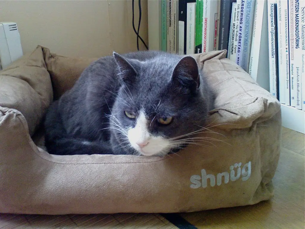 Vi har en kattkorg här i huset och den används ganska flitigt. Annars gör ju katterna som katter brukar = sover lite där de tycker att det passar. I alla fall tyckte vi att det var dags att köpa en kattsäng idag. Däremot var jag inte beredd på att vi skulle komma hem med en anatomisk kattbädd som formar sig efter katten, ökar blodcirkulationen och alltså fungerar som en katternas tempur-madrass? Eh?