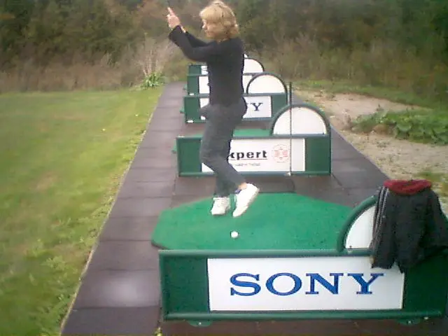 Vi lyckades få in en del kanonträffar. Annika lyckades krocka en annan boll två gånger. Jag lyckades studsa bollen på någon slags ”målstudsmattor” två gånger. Både jag och Annika lyckades valla bollen i plåtavskiljarna (alltså de där gröna staketen som står mellan utslagsplatserna).