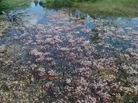 Vit fetknopp växer normalt på torra hedmarker, fast de här stackars fetknopparna har fått ta sig ett ofrivilligt bad i egen pool…