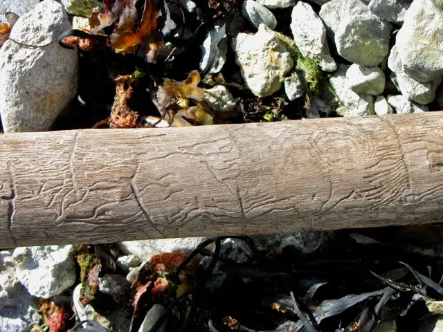 På den här grenen är det maskar eller larver som har gjort spår. Om det inte är ett yxskaft från vikingatiden med den ursrprungliga formen av runor? Vad tror ni?