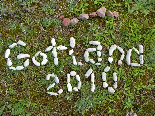Avslutningsvis ännu lite spår efter mänsklig aktivitet. Jag fick rätta till vissa bokstäver lite eftersom ett par stenar låg fel.