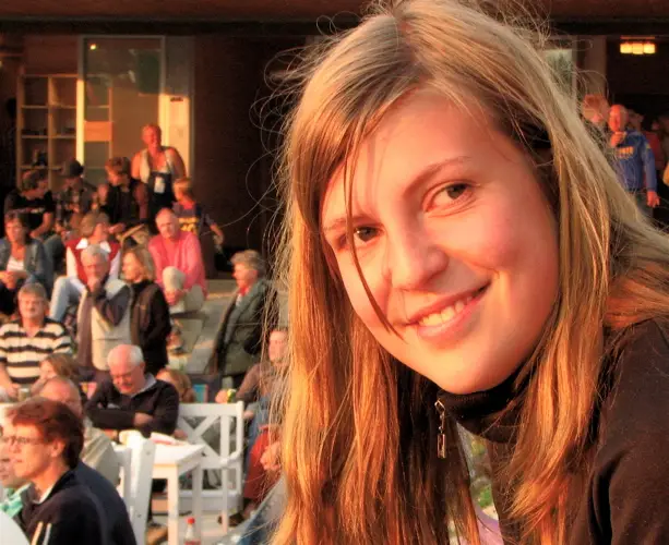 Här är Alice i kvällsljuset. De hade sådan tur med vädret att de det lilla regn som kom, slutade lagom till att uppträdandet började.