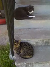 Katterna ligger helt i skuggan på trappan när det är som varmast.