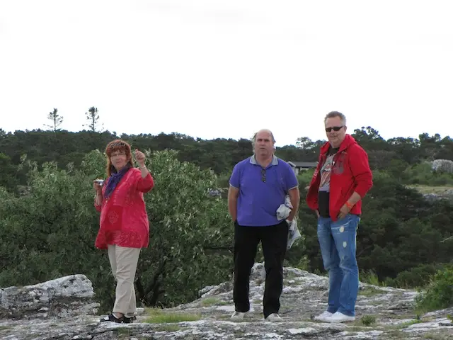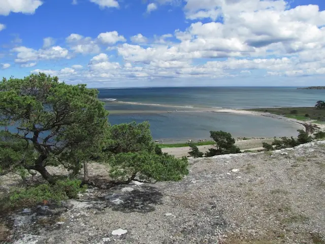 Sen fortsatt vi till Grogarns huvud. Det höga klintberget som ligger mellan Katthammarsvik och Herrvik. Kuriosa: när vi hade gått ganska långt ut på berget kom en charmig kvinna i högklackat emot oss. Hon tittade på våra fötter, skrattade och sa ”Ja ni har i alla fall bra skor på fötterna. Jag måste gå och byta…” Jag har nog aldrig tänkt tanken att kliva ur bilen i högklackat i de där trakterna. Jag är ju lite rutinerad.