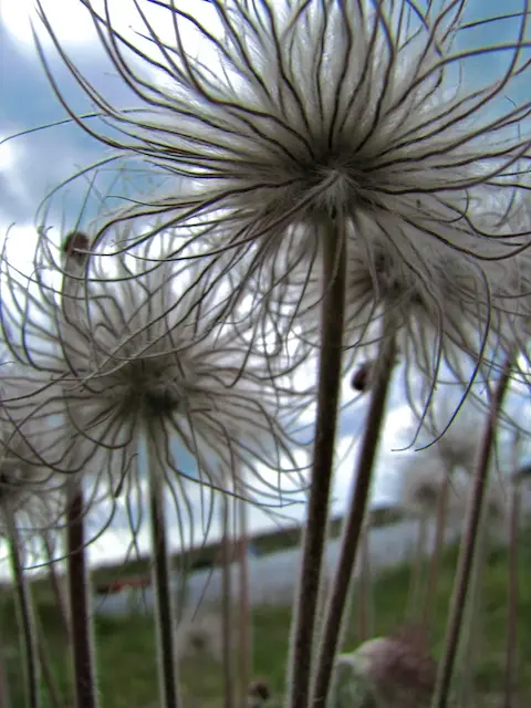Det stod en del utblommade fältsippor och vajade i vinden.