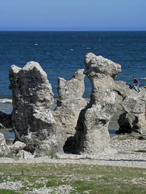 Jag var ofta vid Folhammar när jag var liten. Jag klättrade i raukarna och på kvällen åkte vi hit, sprang i labyrinterna ovanför och grillade korv. Det var så himla mysigt. Nu när jag går runt bland raukarna får jag tillbaka den känslan. Först när jag kom hem och tittade på den här bilden såg jag pojken som klättrar. Det där kunde ha varit jag när jag var liten.