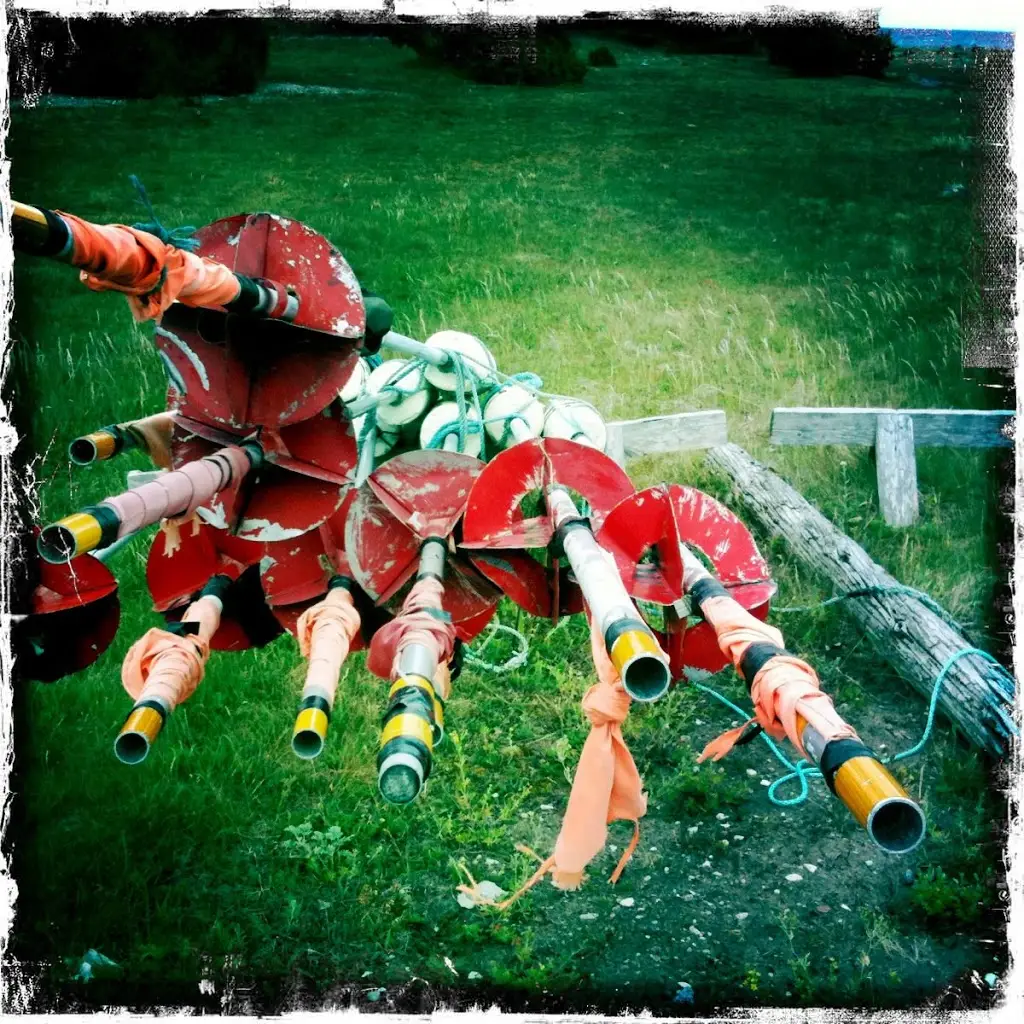 Nu kommer jag inte på vad det här heter? Flöten? Tja, de sitter på fisknät i alla fall och bildar en ganska tjusig röd samling.