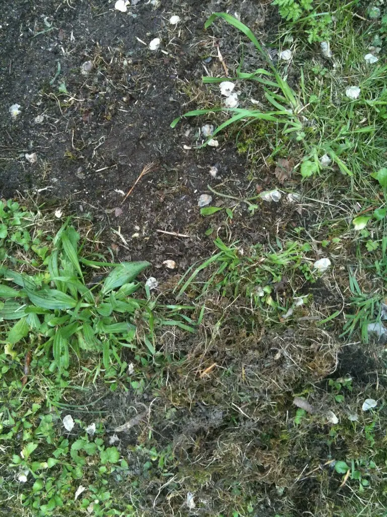 Idag blev jag tvungen att fotografera. Här har Silver krattat bort mossa, frilagt jorden och nu är det dags att gödsla. Bye, bye mossa säger jag! Välkommen nytt gräs!