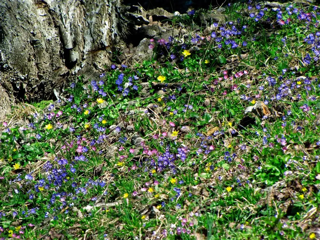 Blåsippor fanns det förstås. Jag har fotograferat så många blåsippor att kameran börjar bli lite mätt, men jag tog i alla fall en bild på den här sköna paletten med både blåsippor och svalört. Samt förstås rödrosa blåsippor.