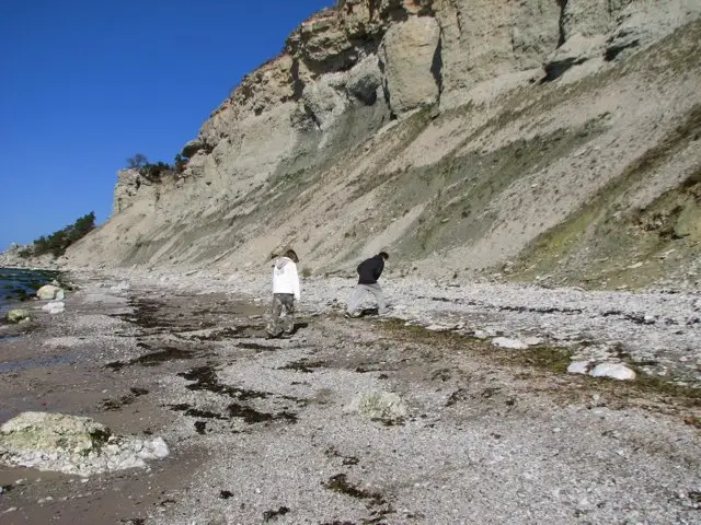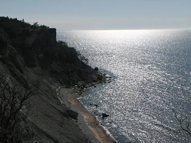Så här ser kusten ut om man tittar neråt uppifrån klintberget vid Burge.