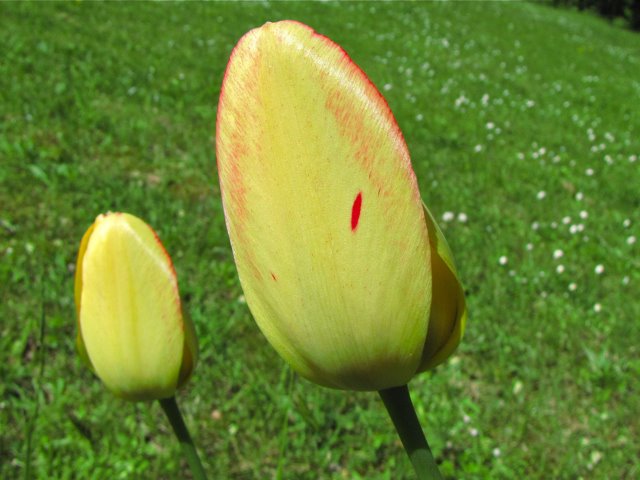 Ja, gräs och gräs. I vår gräsmatta växer alla möjliga växter. Gullvivor, teveronica, humlelucern, vitklöver, rödklöver, tusenskönor, svartkämpe, rödplister, ängssyra, kornvallmo, blåsippor och ett par sorter till som jag inte minns just nu. Och jag gillar allihop! Det är så härligt att ha en gräsmatta som är som en blomsteräng. Aldrig i livet att jag vill ha en gräsmatta med enbart gräs.
